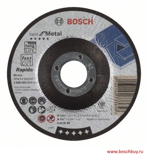 2608603513 Отрезной круг Best for Metal Rapido 115x1.0 мм по металлу вогнутый