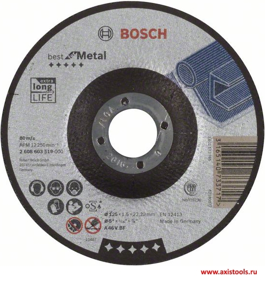 Отрезной круг Best for Metal 125х1.5 мм по металлу вогнутый (2 608 603 519, 2608603519, 2.608.603.519)