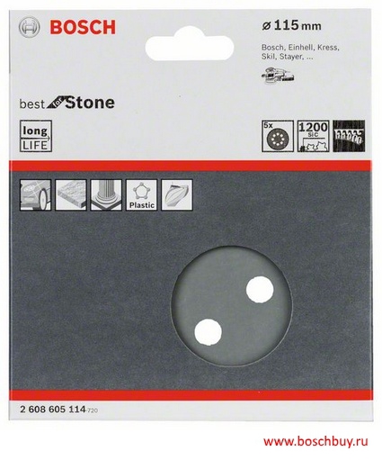 2608605114 Комплект 5 Шлифовальных листов 115 мм К1200 по камню Best for Stone