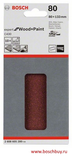 2608605280 Набор 10 шлифовальных листов C430 Expert for Wood and Paint 80x133 мм K80 по дереву и краске
