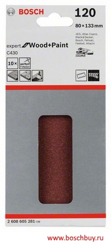 2608605281 Набор 10 шлифовальных листов C430 Expert for Wood and Paint 80x133 мм K120 по дереву и краске