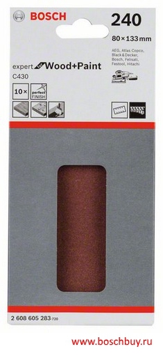 2608605283 Набор 10 шлифовальных листов C430 Expert for Wood and Paint 80x133 мм K240 по дереву и краске