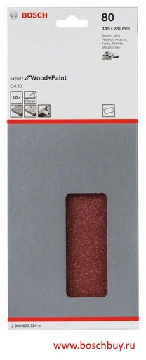 2608605324 Набор 10 шлифлистов Bosch Expert for Wood and Paint C430 115x280 мм K80 по дереву и краске
