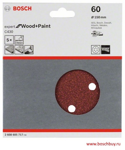 2608605717 Комплект 5 Шлифовальных листов Bosch Best for Wood and Paint C430 150 мм К60 по дереву и краске