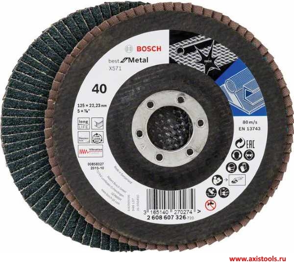 Шлифовальный круг X571 Best for Metal 125 мм, лепестковый K40Bosch X571 Best for Metal 125 ммBosch26086073262 608 607 3262.608.607.32631651402702740.110https://www.axistools.ru/images/2608607326.jpgШлифовальный круг X571 Best for Metal 125 мм, лепестковый K40 (2 608 607 326, 2608607326, 2.608.607.326)https://www.axistools.ru/2608607326.html
