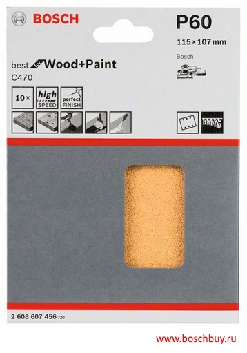 Описание Компект 10 шлифлистов 115х107 мм K60 Best for Wood для Bosch GSS 140 A Описание В упаковке 10 шт. Подробная информация Размеры листа, мм 115x107 Размер зерна