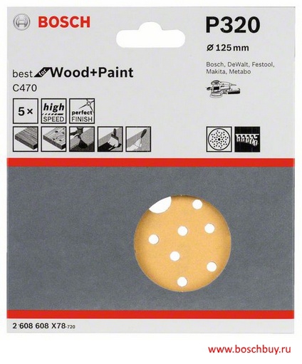 2608608X78 Набор 5 шлифлистов Bosch Best for Wood and Paint Multihole C470 125 мм K320 по дереву и краске