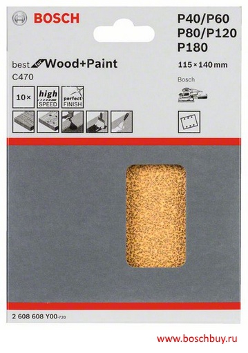 2608608Y00 Набор 10 шлифовальных листов C470 Best for Wood and Paint 115x140 мм 6отверстий K40-180 по дереву и краске