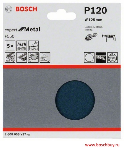 2608608Y17 Набор 5 шлифовальных листов F550 Expert for Metal 125мм K120 по металлу