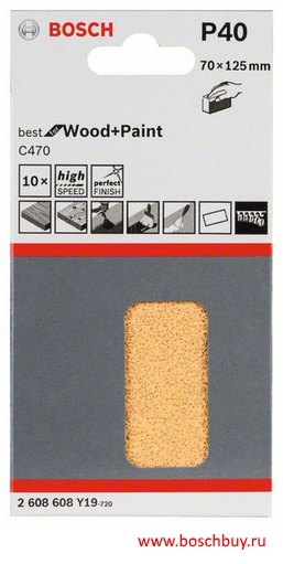 2608608Y19 Набор 10 шлифовальных листов C470 Best for Wood and Paint 70x125 мм K40 по дереву и краске для AUZ 70 G