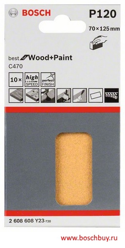 2608608Y23 Набор 10 шлифовальных листов C470 Best for Wood and Paint 70x125 мм K120 по дереву и краске для AUZ 70 G