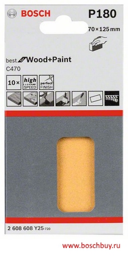 2608608Y25 Набор 10 шлифовальных листов C470 Best for Wood and Paint 70x125 мм K180 по дереву и краске для AUZ 70 G