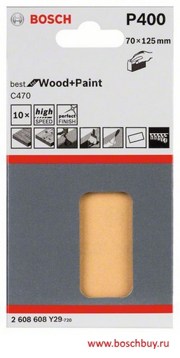 2608608Y29 Набор 10 шлифовальных листов C470 Best for Wood and Paint 70x125 мм K400 по дереву и краске для AUZ 70 G