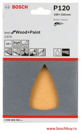 2608608Z96 Набор 10 шлифлистов Best for Wood and Paint 100х150 мм 7 отверстий K120 по дереву и краске