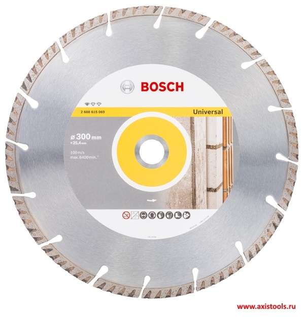 Рекомендовано производителем как замена для: 2 608 602 548 Алмазный диск Professional for Universal 300-20/25,4 мм 2 608 603 819 Алмазный диск Standard for Universal 300х25 мм универсальный