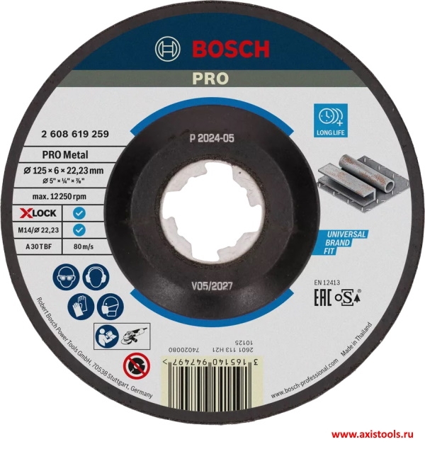 - Обдирочный круг X-LOCK PRO Metal 2608619259 с опущенным центром идеально подойдет для снятия окалины и корок с литых заготовок и поковок, обработки литья и сварных швов, удаления ржавчины и заусенцев