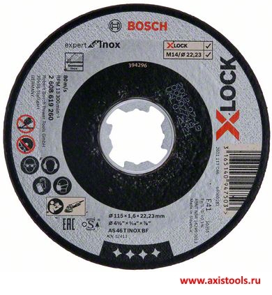 - Отрезной круг X-LOCK Expert for Inox 2608619260 предназначен для углошлифовальных машин с системой X-LOCK и болгарок с обычной системой крепления
