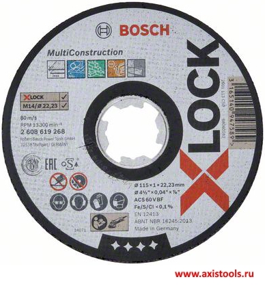 - Отрезной круг X-LOCK Multi Material 2608619268 предназначен для углошлифовальных машин с системой X-LOCK и болгарок с обычной системой крепления