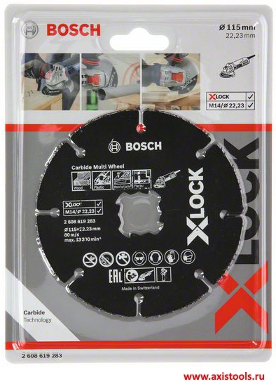 - Отрезной круг X-LOCK Carbide Multi Wheel 2608619283 по мягким материалам предназначен для углошлифовальных машин с системой X-LOCK и болгарок с обычной системой крепления