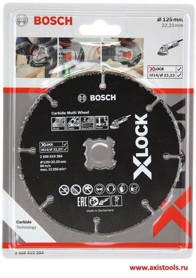 - Отрезной круг X-LOCK Carbide Multi Wheel 2608619284 по мягким материалам предназначен для углошлифовальных машин с системой X-LOCK и болгарок с обычной системой крепления