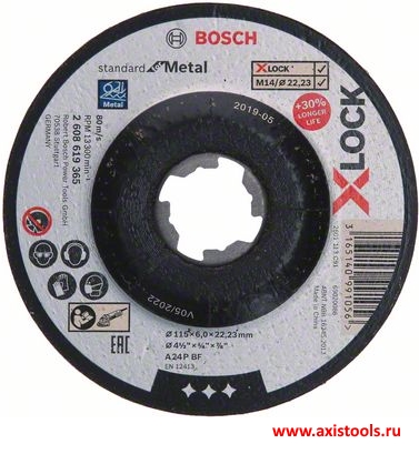 - Зачистной круг X-LOCK Standard for Metal 115х22.23 мм толщиной 6 мм предназначен для углошлифовальных машин с системой X-LOCK, а так же для болгарок с обычной системой крепления
