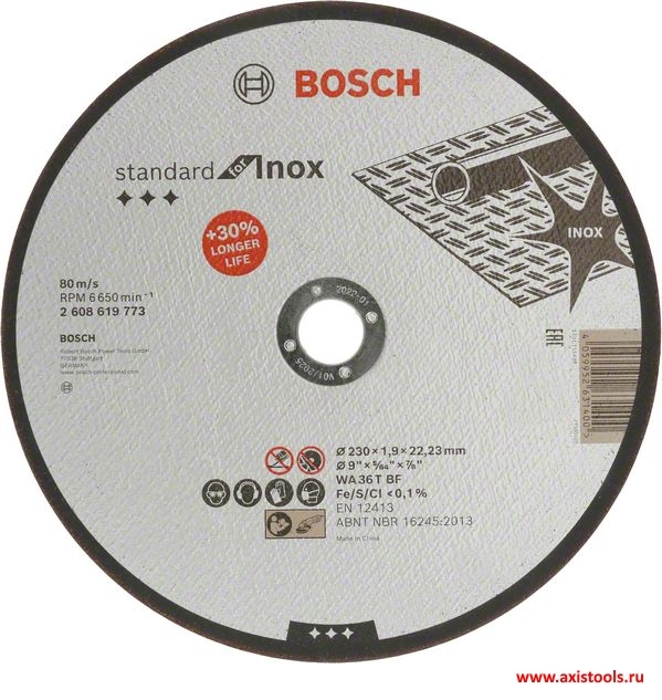 2608619773 Отрезной круг Standard for Inox 230х1.9 мм по нержавейке прямой