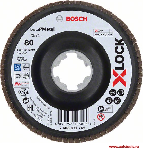 - Лепестковый шлифовальный круг X-LOCK X571 Best for Metal 2608621765 предназначен для углошлифовальных машин с системой крепления X-LOCK и болгарок с обычной системой крепления