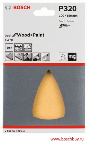 2608624056 Набор 10 шлифовальных листов C470 Best for Wood and Paint 100х150 мм 7 отверстий K320 по дереву и краске