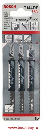 2608633A31 Пилка для лобзика Precision for Wood, T 144 DP, набор 3 пилки по дереву