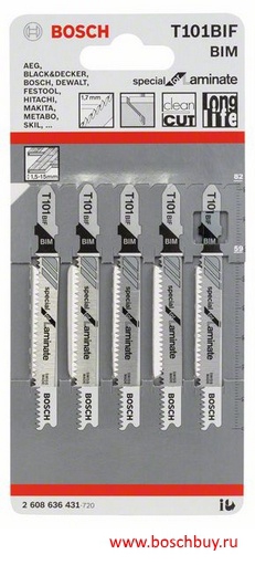 Пилка для лобзика Special for Laminate, T 101 BIF, набор 5 пилок для ламината (2 608 636 431, 2608636431, 2.608.636.431)