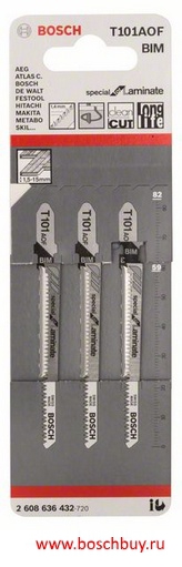 2608636432 Пилка для лобзика Special for Laminate, T 101 AOF, набор 3 пилки для ламината