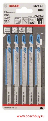 Пилка для лобзика Speed for Metal, T 321 AF, набор 5 пилок по металлу (2 608 636 705, 2608636705, 2.608.636.705)