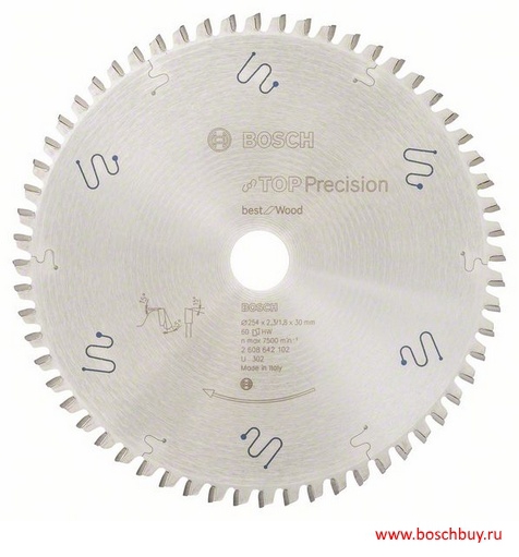 2608642102 Пильный диск Bosch Top Precision Best for Wood 254х30х60T по дереву