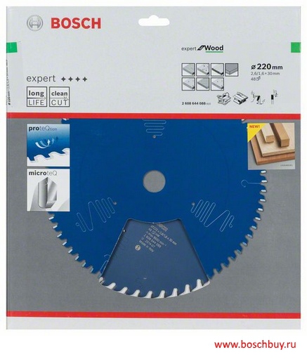 2608644088 Пильный диск Expert for Wood 220x30x2.6/1.6x48T по дереву