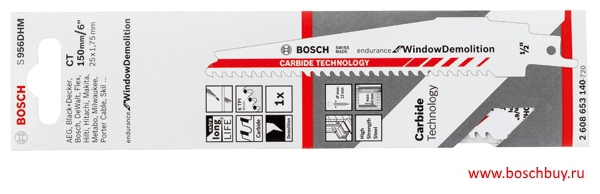 Полотно ножовочное Endurance for Window Demolition, S 956 DHM, набор 10 полотен для демонтажа окон (2 608 653 142, 2608653142, 2.608.653.142)