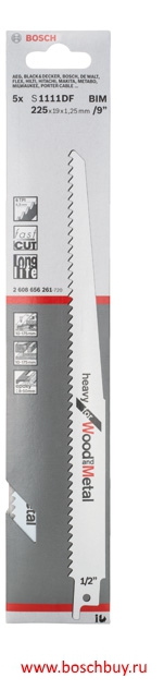 2608656261 Комплект 5 пилок Heavy for Wood and Metal S 1111 DF BIM для ножовки по дереву и металлу