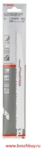 Рекомендовано производителем как замена для: 2 608 656 257 Полотно ножовочное Heavy for Metal, S 1110 DF, набор 5 полотен по металлу