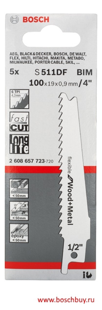 2608657723 Полотно ножовочное Flexible for Wood and Metal, S 511 DF, набор 5 полотен по дереву и металлу