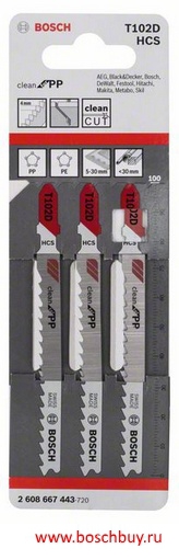 Пилка для лобзика Clean for PP, T 102 D, набор 3 пилки по пластмассе (2 608 667 443, 2608667443, 2.608.667.443)