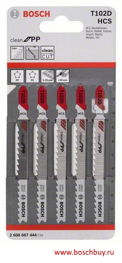 2608667444 Пилка для лобзика Clean for PP, T 102 D, набор 5 пилок по пластмассе