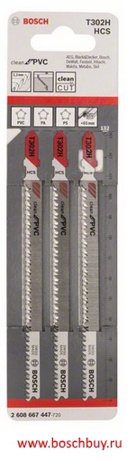 Пилка для лобзика Clean for PMMA, T 302 H, набор 3 пилки по пластмассе (2 608 667 447, 2608667447, 2.608.667.447)