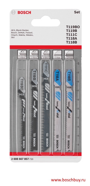 Пилка для лобзика Basic for Wood and Metal, T 119 BO, T 119 B, T 111 C, T 118 A, T 118 B, набор 5 пилок по дереву и металлу (2 608 667 857, 2608667857, 2.608.667.857)
