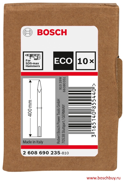 Описание набора пик 2608690235, 2 608 690 235, 2.608.690.235 Набор 10 пиковых зубил SDS-max 400 мм ECO