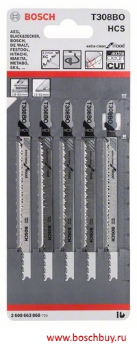 2 608 663 868 Пилка для лобзика Extra-Clean for Wood, T 308 BO, набор 5 пилок по дереву