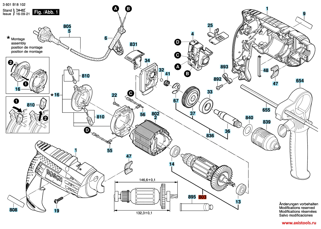 Якорь для Bosch GBS 16 RE, GSB 16, GSB 16 RE, GSB 1600, GSB 1600 RE.