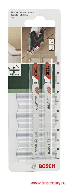 Пилка для лобзика Clean for PP, T 102 D, набор 2 пилки по пластмассе (2 609 256 C56, 2609256C56, 2.609.256.C56)