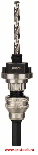Шестигранный адаптер 2609390589 под резьбу 1/2" и 5/8" с центрирующим твердосплавным сверлом HSS-G (патрон 1/4") предназначен для коронок различного диаметра от 14 до 210 мм