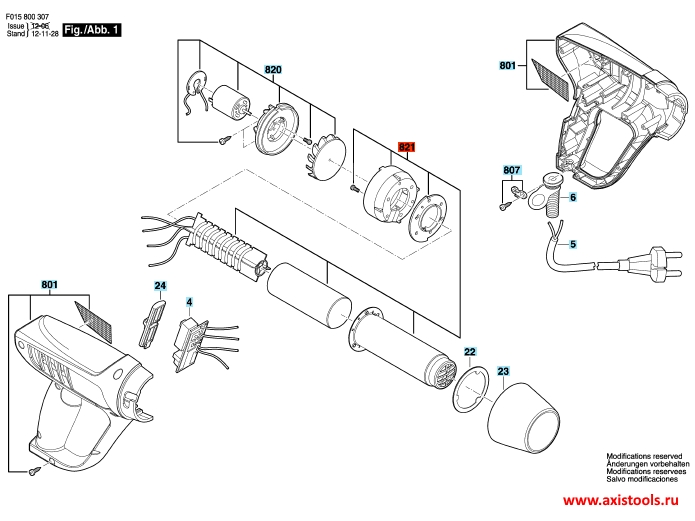 Комплектация нагревателя для Skil 8003 2610Z04641, 2 610 Z04 641, 2.610.Z04.641