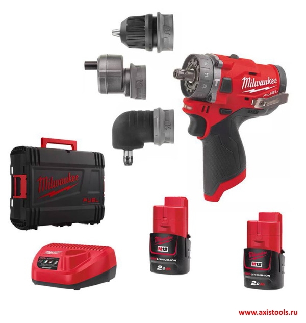 Milwaukee M12 FPDXKIT-202X 4933464138 - суперкомпактная ударная дрель-шуруповерт с 3-мя разными насадками для работы в самых труднодоступных местах