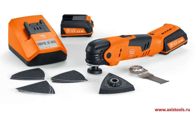 Реноватор FEIN MultiTalent AFMT 12 SL Start - универсальный осциллятор/реноватор для ремонтных и отделочных работ с питанием от аккумулятора и основными принадлежностями в комплекте. Сфера использования реноватора - от выполнения небольших вырезов до обработки больших поверхностей, от грубого шлифования до зеркальной полировки поверхности.